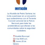 19 febrero, 2025IMPORTANTE La Alcaldía de Pedro Santana, les invita a participar en un encuentro que sostendremos con el Teniente Coronel Lemoniel...