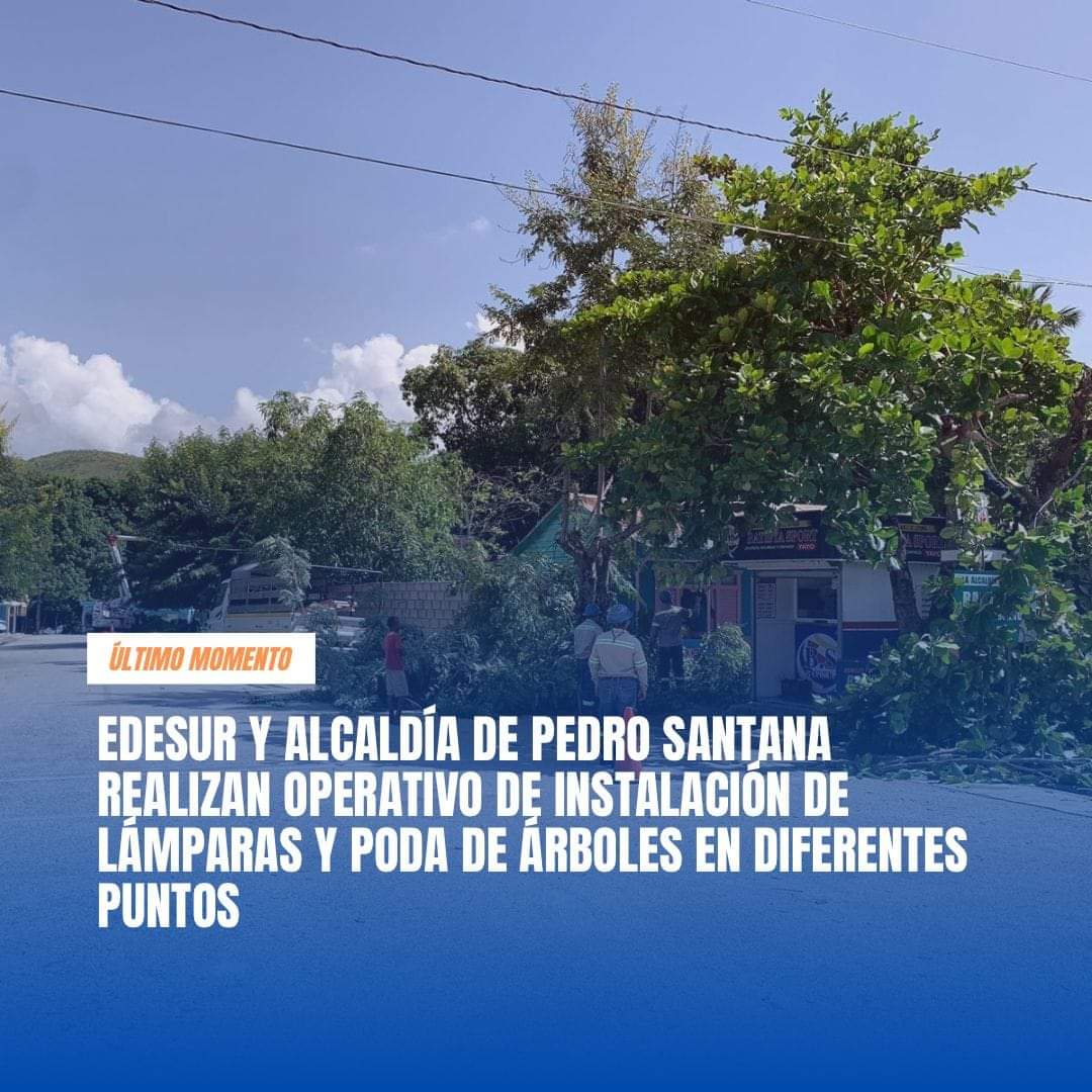 Edesur Dominicana y la Alcaldía de Pedro Santana iniciaron un operativo de instalación y reparación de lámparas en diferentes puntos del municipio.