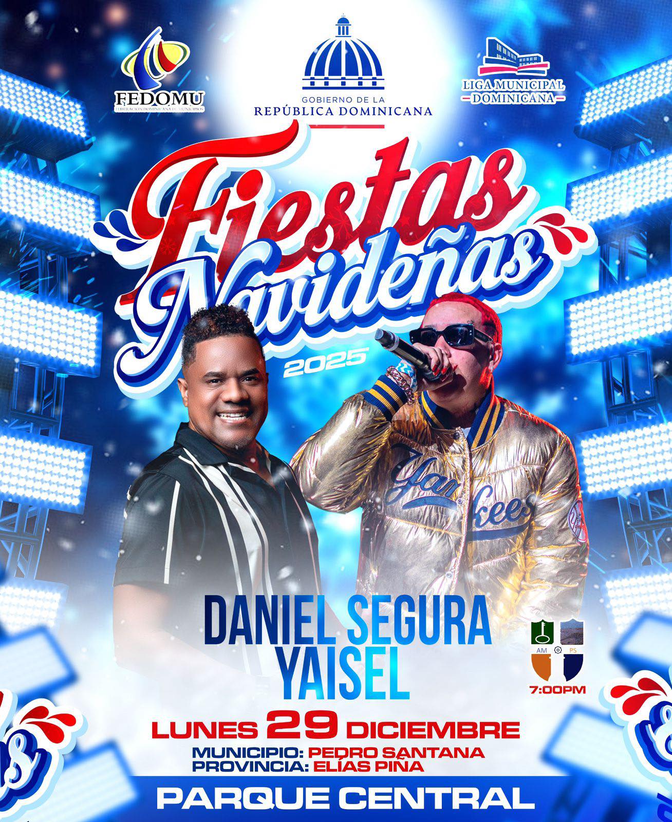 La Alcaldía de Pedro Santana, con el apoyo del Gobierno de la República Dominicana, FEDOMU y la Liga Municipal Dominicana, invita a toda la familia a disfrutar de nuestras Fiestas Navideñas 2025.